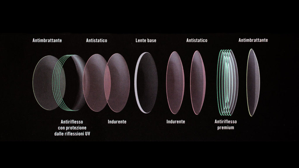 Nello specifico, il trattamento antiriflesso su un paio di occhiali da vista deve essere fatto sia sulla superficie esterna sia sulla superficie interna della lente, attraverso strati sottilissimi che interagiscono tra loro. In questo modo si riducono al minimo i riflessi causati da luci con diverse lunghezze d’onda e provenienti da varie direzioni e diminuisce l’affaticamento degli occhi.