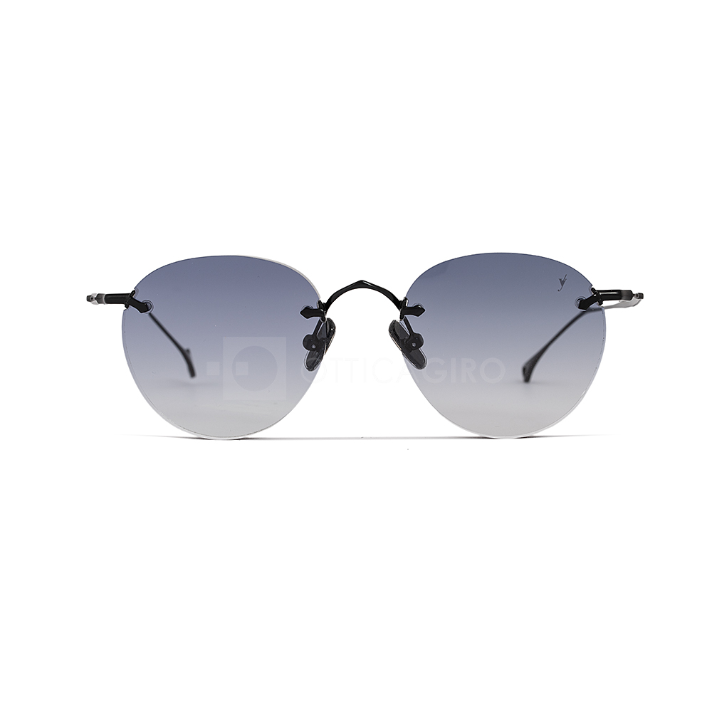 The Eyepetizer Oxford sunglass has a medium-sized pantos shape. A minimalist design but full of “charm” as befits an open-frame eyeglass with a degrading lens. The ensemble is strongly characterized by the 5 mm lateral thickness of the solar lens used.