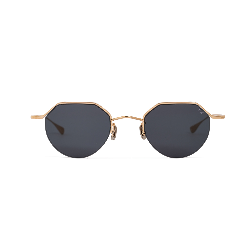 Eyevan 7285 – 185 sunglasses have a medium-sized panto shape squared off at the top. The glasses have a design that finds inspiration from the classic shapes of vintage catalogs. Characteristic is the three-dimensional design of the temple junctions that join the front to the temples. The flexible ?-titanium temples have an internal hinge slip-resistance system that make the opening smooth but not too soft. Made of Japanese titanium.