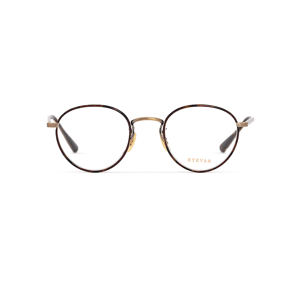 Eyevan – Wright prescription eyeglasses have a classic small P3 pantoscopic shape. The rods are made by one of the few artisans in Sabae who still uses the “SHINBARI” technique of splitting the rods into two pieces and attaching a metal core between the two pieces of acetate. The core of the rods is hand carved by Sabae artisans using a traditional Japanese design. All the metal used to make the eyewear is titanium.