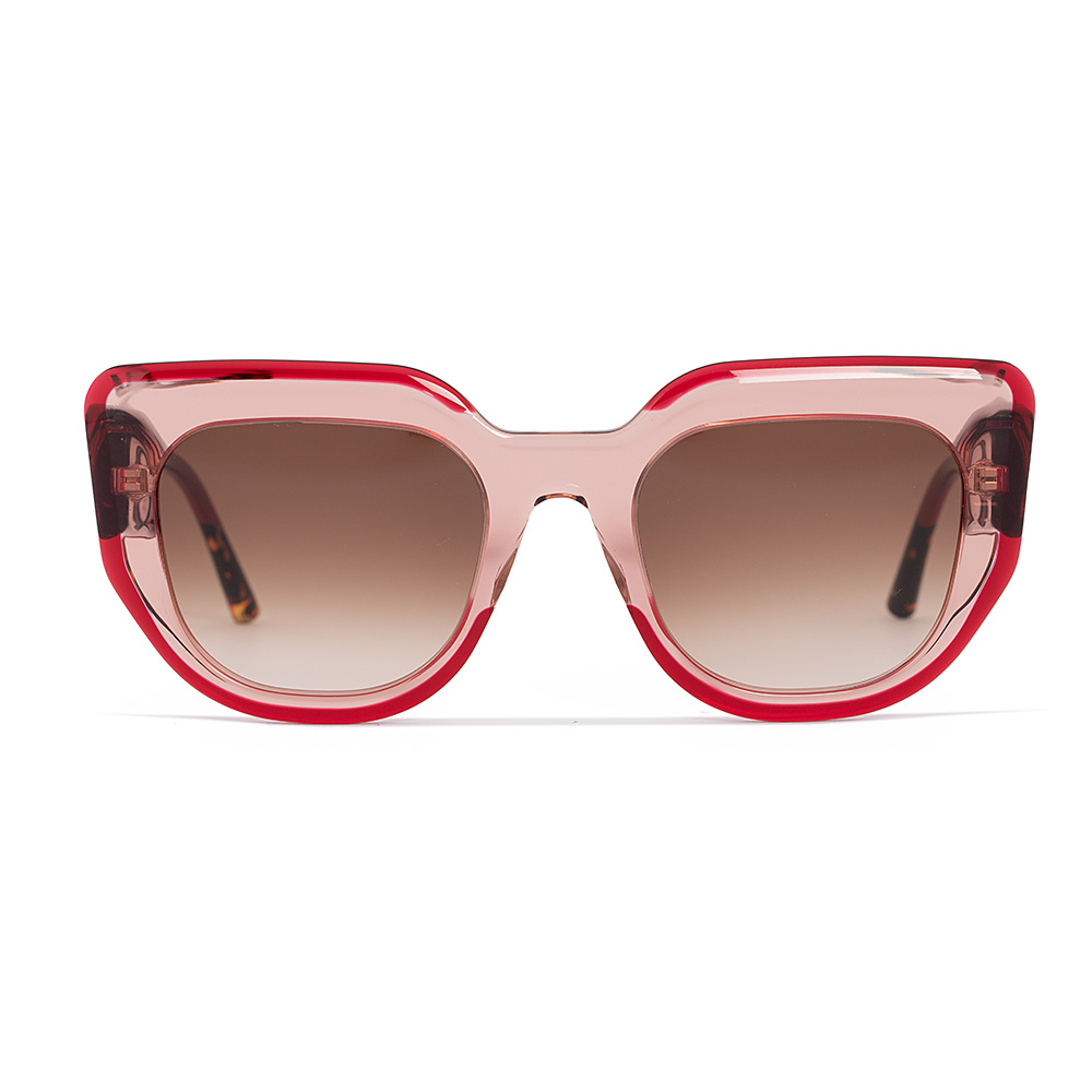The Res/Rei Genziana sunglasses have a large square shape and are part of the Flowers collection, inspired by nature. The colors and soft curves of individual glasses are reminiscent of those of a blooming spring; acetates combine and overlap each other like exotic flower petals.