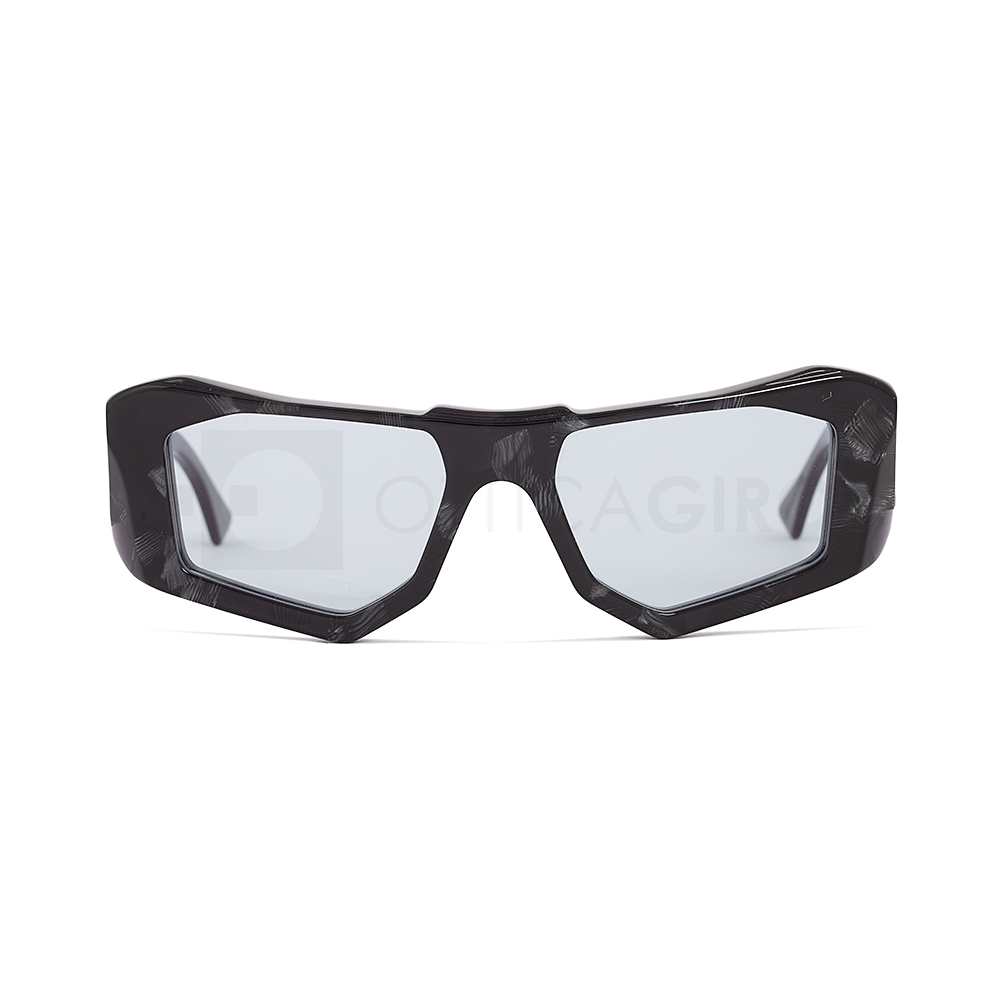 L’occhiale da sole Kuboraum Mask F6 ha una forma allungata poligonale, una variazione della forma rettangolare. Il design sofisticato costituito da una molteplicità di curve e angoli ottenuto utilizzando acetato di cellulosa fresato, rende questo occhiale aggressivo e unico.