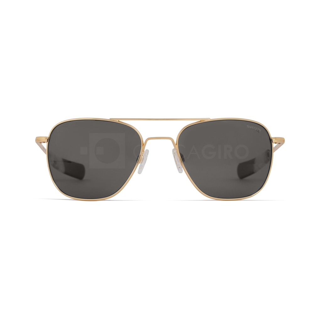 L’occhiale da sole Randolph 50th Anniversary Aviator nella intramontabile montatura in oro 23k con lenti SkyTec™ in vetro American Gray. Ogni paio è dettagliato con i terminali delle aste in acetato Mazzucchelli Sky Ivory e nero e il logo del 50° anniversario in oro metallizzato. Il cofanetto da collezione per il 50° anniversario in edizione limitata include una scatola con il logo del 50° anniversario in bambù, una custodia color cognac con il logo dorato del 50°, un panno per la pulizia del 50° con specifiche militari, un diario di viaggio rilegato in ecopelle color cognac con immagini degli archivi Randolph e un set di 5 spille da collezione che raffigurano l’evoluzione del logo Randolph nel corso degli anni.